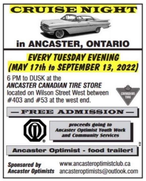 Ancaster Cruise Night – Sep 13 – 2022