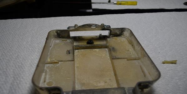 We’re not going to use the original electronics box from this car as an original ‘79 issue in better condition was found, so we’re going to take this one off and set it aside. The main purpose of these boxes was to keep all the electronics dry and free of sand and dirt. They were not always the best at doing that. This one took a beating throughout it’s life.